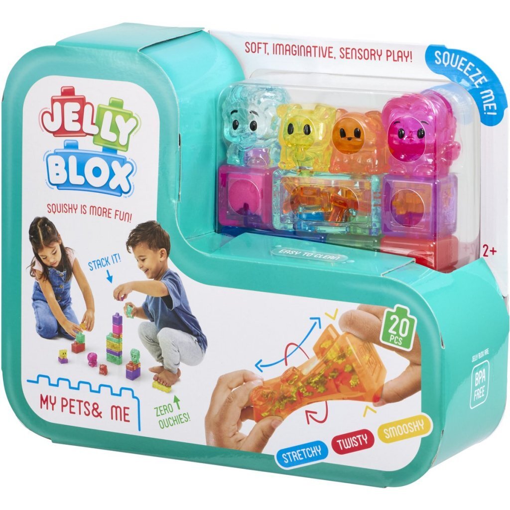 Met de zachte blokken Jelly Blox kunnen kinderen bouwen, knijpen en zelfs platdrukken. Sommige blokken zijn gevuld met materialen zoals zand, blokjes of schuimballetjes die de zintuigen stimuleren en de sensorische tactiliteit bevorderen. Verder bevat de set diertjes wat het nog leuker maakt om mee te spelen. 20-delig. Geschikt voor kinderen vanaf 2 jaar.