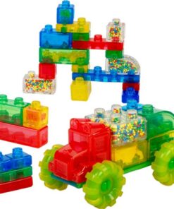 Met de zachte blokken Jelly Blox kunnen kinderen bouwen, knijpen en zelfs platdrukken. Sommige blokken zijn gevuld met materialen zoals zand, blokjes of schuimballetjes die de zintuigen stimuleren en de sensorische tactiliteit bevorderen. Met deze set kan je een mooie auto bouwen. 35-delig. Geschikt voor kinderen vanaf 2 jaar.