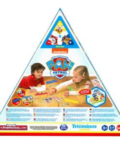 Triominos Junior Paw Patrol biedt een frisse benadering van het traditionele Triominos spel. Met deze slimme nieuwe versie van het spel kunnen kinderen vanaf 3 jaar leren over getallen en kleuren terwijl ze spelen met Paw Patrol ! Dit bordspel combineert plezier en leren. Spelenderwijs ontwikkelen kinderen hun denk-, reken- en probleemoplossende vaardigheden. Ze leren ook over kleuren en getallen en verbeteren hun concentratievermogen.De Triominos zijn dubbelzijdig, zodat het op 2 verschillende manieren gespeelt kan worden. Namelijk door middel van het maken van een puzzel of het spelen van het Triominos spel.