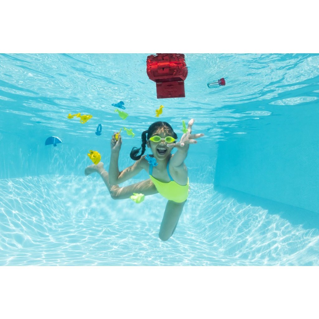 Dit interactieve spel draait om snelheid, logisch nadenken én duikvaardigheid. Met drie verschillende sleutels is het telkens weer een verrassing welke de kist opent. Zodra dat lukt, begint de race om als eerste de verborgen schatten op te duiken.