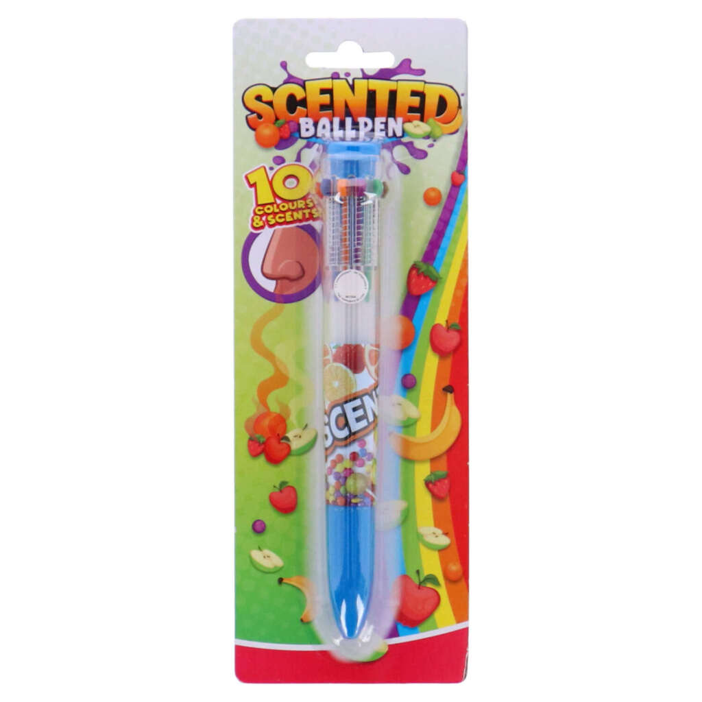 Grote balpen die in 10 verschillende kleuren kan schrijven. Elke inkt heeft een eigen geur, zoals banaan, aardbei of appel. Geschikt voor kinderen vanaf 3 jaar.