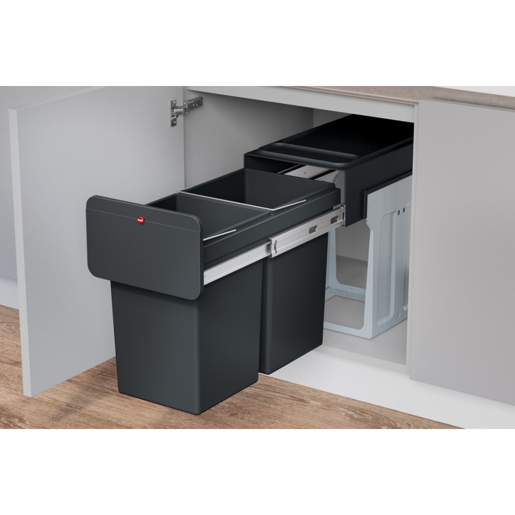 - 2 binnenemmers (2 x 14 l) gemaakt van 100% gerecycled plastic