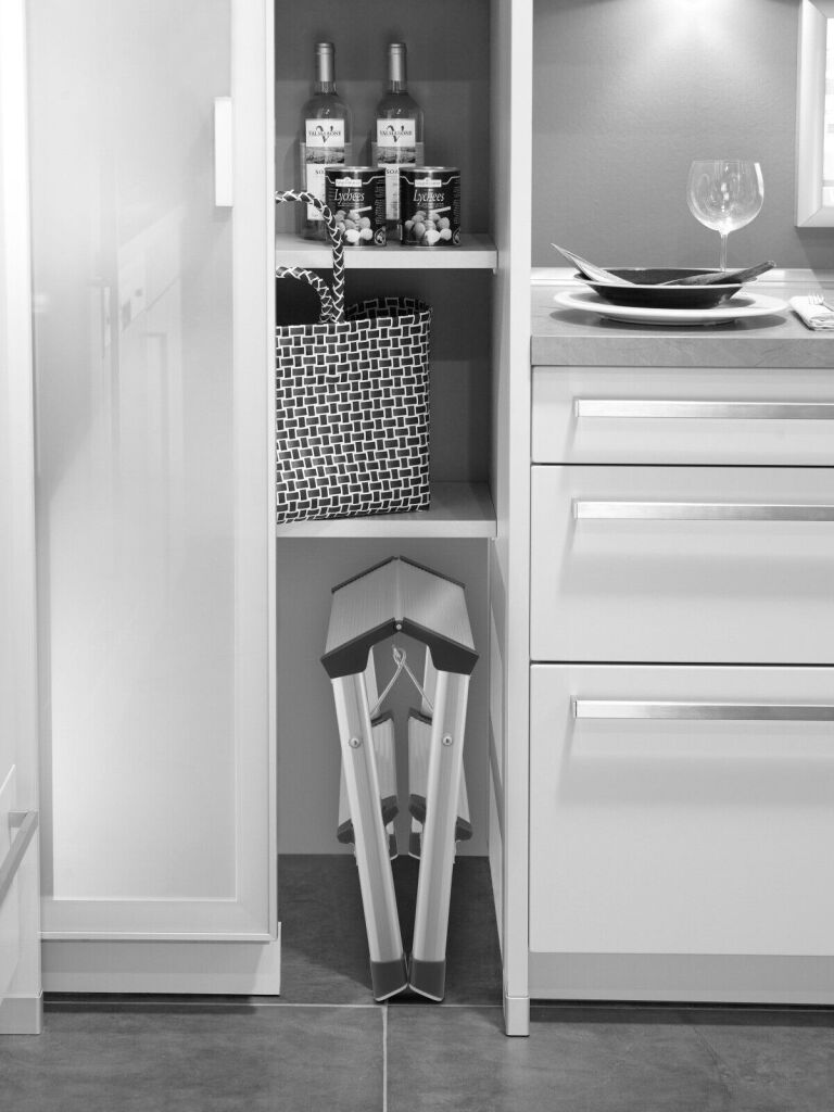 Draag de lichtgewicht L90 Step-ke trapladder onder uw arm en neem hem overal mee naar toe, of u nu schappen in de kelder schoon moet maken, de ramen moet wassen, of een lamp moet vervangen in de garage. De ladder heeft een vergrendelmechanisme dat per ongeluk inklappen voorkomt en hij heeft treden aan beide kanten. De trapladder vouwt compact op, zodat u hem gewoon onder de tafel kan schuiven of in een hoek kan zetten na gebruik. De ladder heeft een maximaal laadvermogen van 150 kg en de maximale werkhoogte is 215 cm.