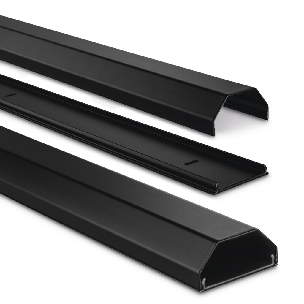 - Elegante kabelgeleiding met afdekking van geanodiseerd aluminium: past harmonieus en onzichtbaar in de woonomgeving, bijv. voor kabelgeleiding naar aan de muur gemonteerde flatscreen-tv’s of beamers aan het plafond