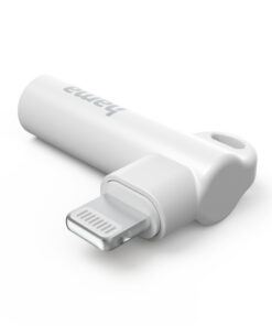 - Jack-adapter met Lightning-stekker voor aansluiting van een apparaat met Lightning-aansluiting (bijv. smartphone, tablet) op een 3,5 mm-jack-stekker (bijv. koptelefoon, luidsprekers)