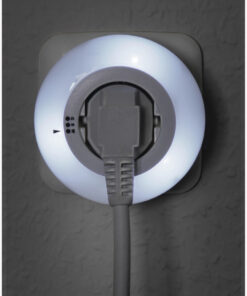 - Energiebesparende led-nacht- en oriëntatieverlichting (wit, groen, blauw) met schemersensor en geïntegreerd stopcontact met extra aanraakbeveiliging voor gebruik in kinderkamers, gangen, kelders, etc
