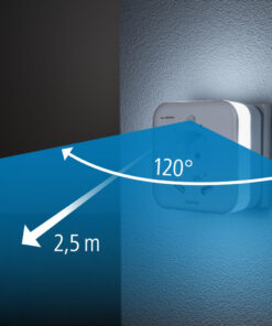 - Het led-nachtlampje detecteert in het donker bewegingen met een detectiehoek van ca. 120° en een bereik van 2,5 m