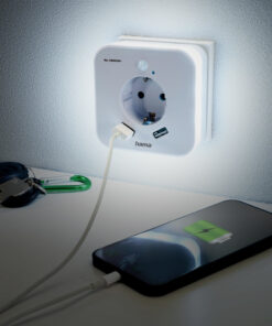 - Energiebesparende led-nacht- en oriëntatieverlichting met bewegingsmelder, geïntegreerde 2-voudige USB-A-oplaadfunctie en stopcontact met extra aanraakbeveiliging voor gebruik in kinderkamers, gangen, kelders, etc
