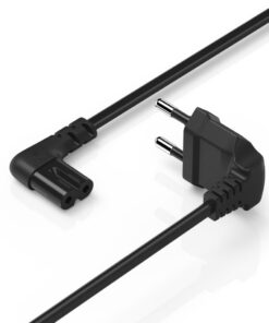 - Haakse stekker met aansluiting volgens Europese standaard: Euro 8 naar dubbele groef (C7)