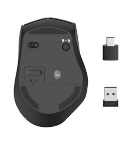 - Optische draadloze muis met 6 knoppen met twee ontvangers voor aansluiting naar keuze op USB-A- en USB-C-poort