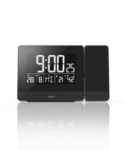 - Weergave van de luchtvochtigheid binnenVia de Rotate-toets kan de draaiing van de projectie met 0° (statische projectie op de muur), 90°, 180° of 360° worden ingesteld
