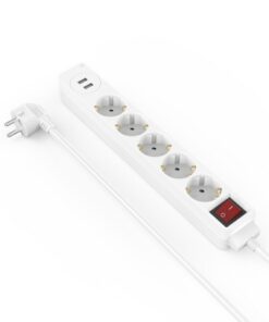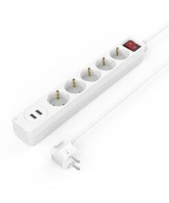 - Meervoudige stopcontacten voor aansluiting van tot zeven elektrische apparaten via vijf geaarde stopcontacten en twee USB-uitgangen