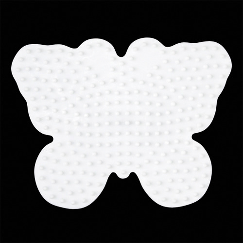 Strijkkralen kun je in bijna elk gewenst patroon leggen en dan door middel van strijkpapier en een strijkijzer samensmelten. Maar daarvoor heb je natuurlijk wel een grondplaat nodig. Witte grondplaat in de vorm van een vlinder.