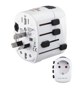 - Voor gebruik met geaarde en niet-geaarde apparaten zoals camera’s, scheerapparaten en smartphone-opladers, ook geschikt voor krachtige apparaten zoals laptops en reisföhns