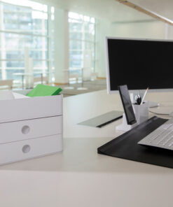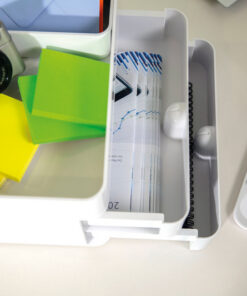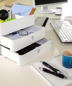 Allison: het opruimsysteem! Kompleet moduleerbaar, individueel combineerbaar, willekeurig stapelbaar, soepellopende schuiflades, uitneembare tussenwanden, verschuifbare- en uitneembare inzetdelen, geintergreerde kabelgeleider, tray te gebruiken als dienblad, gumdopjes om ondergrond te beschermen. Gemaakt van hoogwaardig kunststof. Gemaakt in Duitsland. Overal te gebruiken: op bureau, bij koffiepunt, bij de receptie, in de badkamer, in de hobbyruimte, in de kinderkamer, in de keuken en nog veel meer. Verkrijgbaar in 10 trendy kleuren en kleurcombinaties. Buitenmaat: 260x195x190mm, binnenmaat: 235x180x50mm