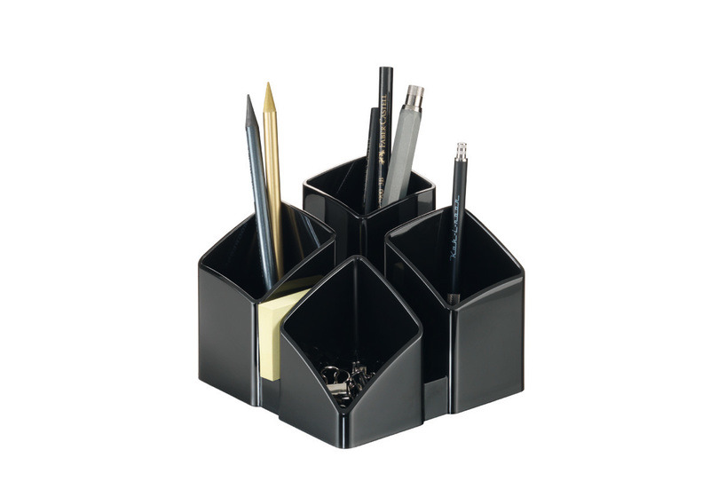 Bureau-organizer, 4-delig. Gemaakt van hoogwaardig kunststof. Voorzien van gummivoetjes. Uit te breiden tot 16 vakken. Afmeting: 124x125x100mm. Verpakt per stuk in een doos. Kleur zwart.