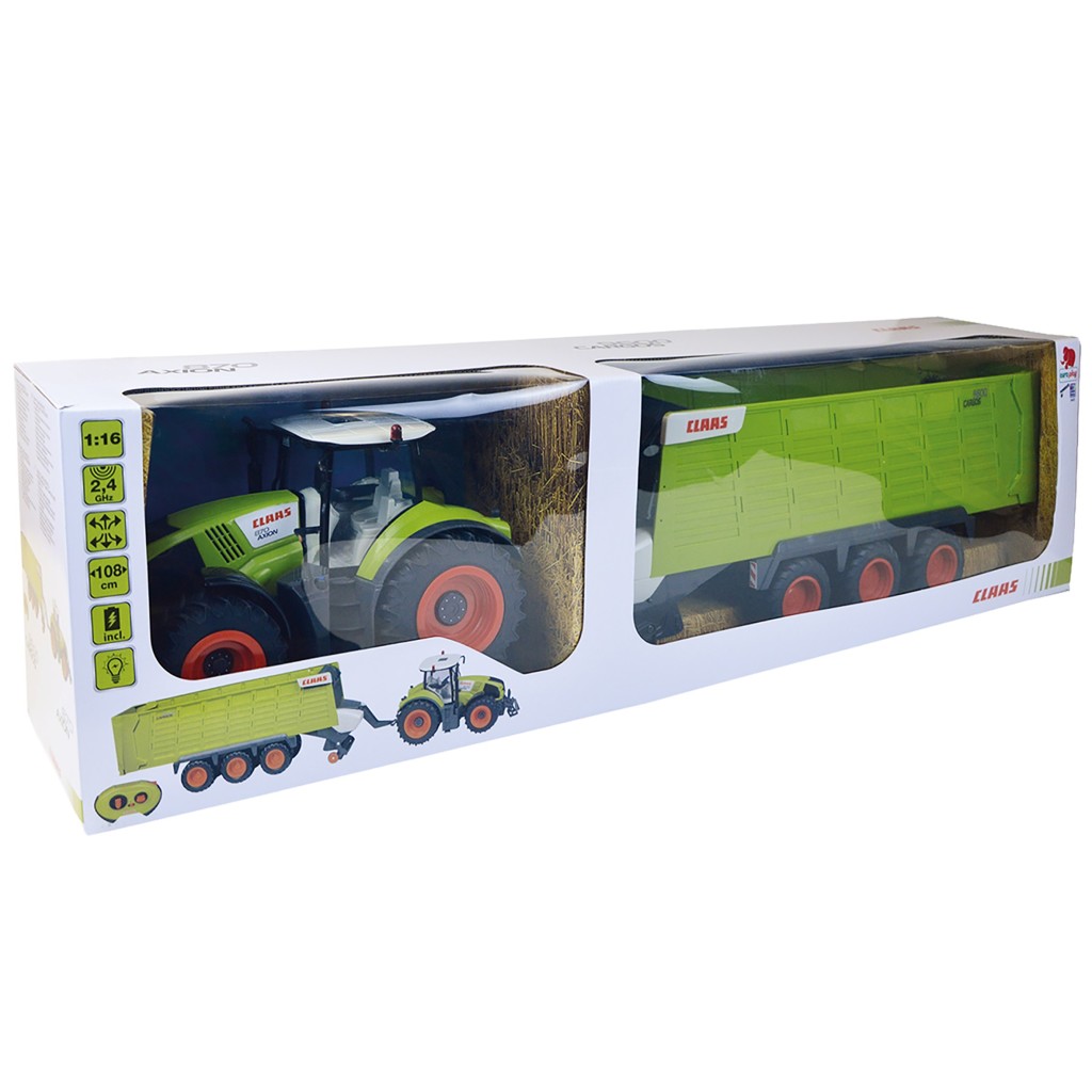 Met volledige functiebesturing (2,4 GHz). Deze stoere tractor in de bekende Claas kleuren is voorzien van LED-licht. Aan de achterkant kun je de CARGOS 9600 aanhanger aankoppelen. Ook aan de voorzijde is een koppeling aangebracht.