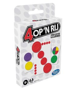 Het klassieke 4 op ’n rij-spel is er nu ook in de vorm van een leuk en compact kaartspel. Kies 2 missiekaarten van de stapel en houd je patronen geheim. Daarna neem je 4 op ’n rij-schijven en moet je proberen om patronen te maken die overeenstemmen met je missies. Het doel is om 4 missies te volbrengen om te winnen. Geschikt voor kinderen vanaf 6 jaar en ouder. Het spel is te spelen met 2 tot 4 spelers.