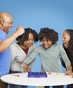 Een snelle variant van het originele spel 4 op ’n Rij! Spelers laten de schijven niet in het speelraam vallen, maar laten ze vanaf de tafel in vakjes van het speelraam springen. Als schijven van een team op de plek van een tegenstander vallen, steelt het team dat vakje! Bij dit onvoorspelbare spel kan alles veranderen in seconden, omdat spelers schijven laten zinken, plekken stelen en tegenstanders saboteren. Wil je nóg meer uitdaging? Probeer dan de andere speelwijzen: alleen op de hoeken of het midden spelen. Wil je het rustiger aan doen, speel dan om de beurt. Geschikt voor kinderen vanaf 8 jaar.