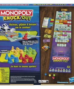 - Laat pionnen glijden om rivalen uit te schakelen en pak het geld in het spel Monopoly Knockout! Alles waar Monopolyfans van houden, in een vrolijk partyspel dat de hele familie in beweging zet.