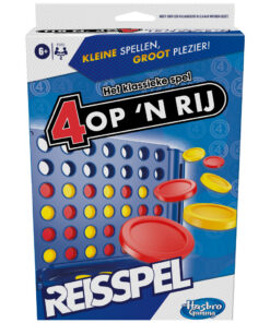 Zorg dat je er 4 op n rij krijgt en je wint ook onderweg met deze compacte versie van het bekende spel 4 op n rij! Je tegenstander en jij krijgen elk 21 schijfjes en proberen er 4 op een rij in het speelraam te krijgen. Maar soms moet je je tegenstanader ook blokkeren om te voorkomen dat hij of zij 4 op n rij krijgt! Als je uitgespeeld bent, gaan alle schijfjes in de staanders en je klapt de opvangbakjes in. Met dit reisspel kun je overal en altijd 4 op n rij spelen!