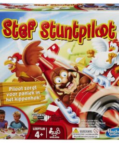 Stef stunt en stuitert en duikt maar raak. Hij vliegt steeds langs jouw kippenhok. Kun jij jouw kippen beschermen tegen Stef en zijn stuiterende stuntvliegtuig? Voor 2 tot 4 spelers vanaf 4 jaar.