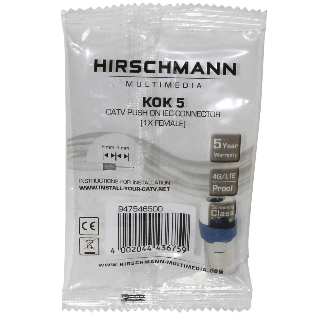 - Kan gecombineerd worden met de speciaal ontwikkelde KOKA 9 TS coaxkabel. Met drievoudige afscherming is uw verbinding 4G (LTE) proof.