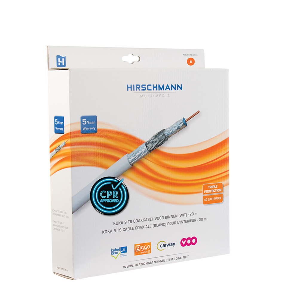 - De KOKA 9 TS coaxkabel kenmerkt zich door een lage demping en triple shielded protection. Hierdoor wordt een optimale afscherming tegen 4G (LTE)-signalen geboden.
