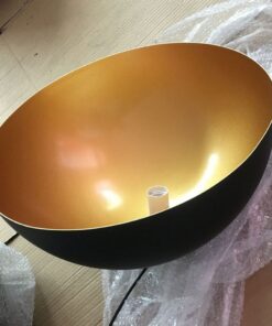 Deze karakteristieke lamp past bij vele interieurstijlen. De lamp is gemaakt van degelijk materiaal en heeft een mat zwarte buitenkant. De binnenzijde is goudkleurig van kleur wat een prachtig lichteffect geeft. Een prachtige lamp, geschikt voor woonkamer, keuken, slaapkamer of overloop. De doorsnede van deze lamp is 35 centimeter en heeft een hoogte van 17,5 cm.