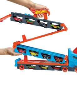 Hot Wheels Speedway Hauler met 3 auto’s. De wagen is uitgeklapt 2 meter lang en heeft plaats voor 20 auto’s! Geschikt voor kinderen vanaf 4 jaar.