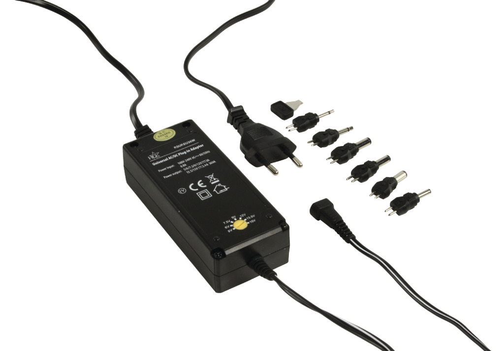 Zeer compacte en super efficiënte 36 W adapter met 5-15 V output en LED indicator. De 6 verwisselbare power tips maken deze adapter geschikt voor veel verschillende apparaten.