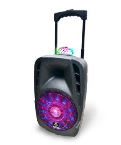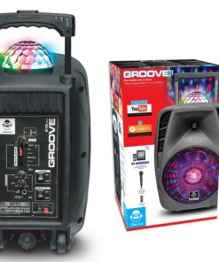 Met de Groove 216 heb je het feestje aan je hand! Dankzij het telescopisch handvat en wielen neem je het feest overal mee naar toe. De Groove beschikt over een vermogen van 100 Watts muziekvermogen met een speeltijd tot 2-4 uur! Verbindt je telefoon en/of tablet via Bluetooth en zing mee met je favoriete liedjes via de meegeleverde microfoon. zodat je je eigen skills kan laten horen aan je eigen vrienden of mensen op straat. Met de ingebouwde disco verlichting in de woofer wat synchroniseert met de muziek maak je je feest helemaal af.