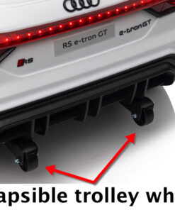 De elektrisch aangedreven auto voor kinderen Audi RS e beschikt over rubberen banden voor optimale grip op zowel harde vloeren als buiten op het terras of de oprit. Het comfortabele lederlook-zitje zorgt bovendien voor uren rijplezier. Verder zijn de verstelbare rijsnelheden ideaal om te beginnen op een lage snelheid en later uitdagender te rijden.