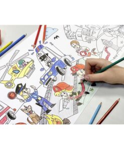 Plak het zelfklevende papier van de tekenrol op een tafel en wegglijden is onmogelijk. Bevestig de “eindeloze” tekenrol aan de wand en laat er een aantal ‘kunstenaars’ op los. De schilderijen kunnen daarna uitgeknipt worden en als decoratie aan de wand worden gehangen. Afmeting: 30 x 400 cm. Geschikt voor kinderen vanaf 3 jaar.