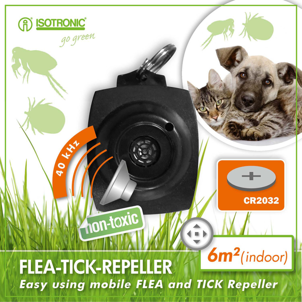 Het innovatieve Anti-Vlo/Anti-Teek apparaat van ISOTRONIC. Werkt op batterijen, mobiel en zeer effectief.