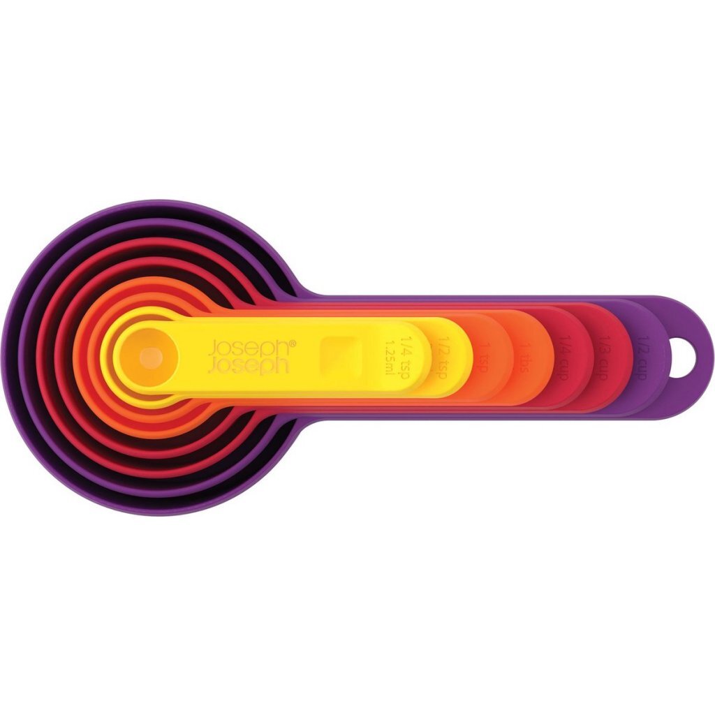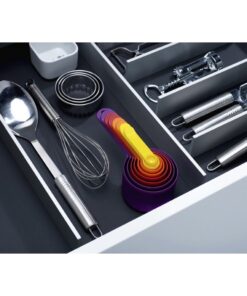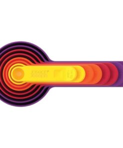 De serie Nest is de ultieme collectie van praktische keukenhulpjes. De Nest artikelen passen allemaal in elkaar zodat ze ruimte besparen in de keukenla en kast. Deze set maatcupjes is ideaal voor tijdens het bakken en koken. De set bestaat uit 8 verschillende maten.
