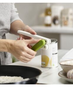 Het openen van blikken, flessen of andere items kan soms een enorme uitdaging zijn. Een tool die je hierbij kan helpen is daarom altijd een uitkomst. Met deze Pivot blikopener van Joseph Joseph heb je zelfs 3 tools in 1 gadget. De opener kan namelijk gebruikt worden voor het openen van blikken, het verwijderen van kroonkurken en het liften van bliklipjes. Elke tool is eenvoudig tevoorschijn te halen door de handgreep te draaien. Hierdoor is de opener compact en bespaart hij ruimte in de keukenlade. Kleur: limoen groen/wit.