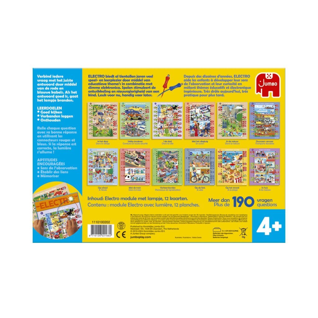 Electrobiedt al tientallen jaren veel speel- en leerplezier door middel van educatieve thema’s in combinatie met slimme elektronica. Spelen stimuleert de ontwikkeling en nieuwsgierigheid van een kind. Leuk voor nu, handig voor later. Verbind elke vraag met het juiste antwoord door middel van de rode en blauwe kabels. Als het antwoord goes is, gaat het lampje branden.