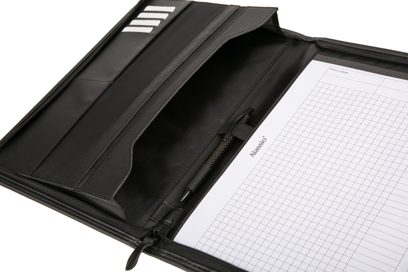 Schrijfmap A4 LORENZO A4 compartiment, één extra compartiment, opbergvakken voor visitekaarten, pennen lus. zwart imitatie leer ca 34 x 25 x 2,5 cm