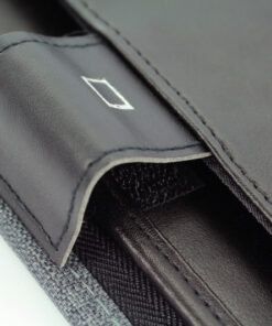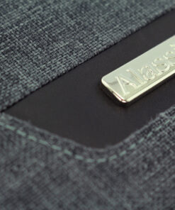 Kunstlederen conferentiemap Alassio Lazio polyester A4 grijs met uitneembaar ringbandmechaniek. Voorzien van schrijfblok, 3 pennenhouders, gevoerd tablet compartiment, 2 insteekvakken voor documenten, 6 visitekaarthouders, 2 SD-kaart compartimenten. Geheel afsluitbaar met ritssluiting. Aan buitenzijde metalen embleem. Afmeting 36×28,5x5cm.