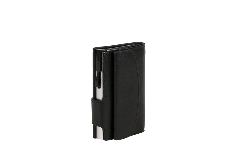 Pasjeshouder Clicksafe RFID Nappaleer ZW/ZI 8 pasjes met opbergvak voor muntgeld