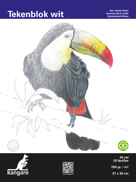 Kangaro K-5331 Tekenblok 27x36cm 200 Gr 20 Vel Wit Fijne Korrel Kopgelijmd