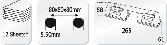 Handige 4-gaats perforator. Capaciteit maximaal 12 vel. Metalen apparaat. Verwijderbare opvangbak.