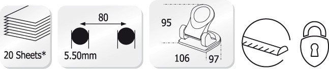 Voordelige kantoorperforator voor ieder bureau. Stevig verstelbare aanleg, goed leesbare formaataanduiding. Capaciteit maximaal 20 vel. Handige bovendeel-vergrendeling voor ruimtebesparend opbergen. Matalen apparaat. Passend bij nietmachines ‘Trendy’.