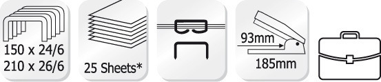 Handige kantoornietmachine voor ieder bureau. Geïntegreerde metalen ontnieter. Kunststof body met metalen mechanisme. Opbergruimte voor nietjes. Bovenlaadmechanisme voor snel herladen. Capaciteit maximaal 25 vel. Passend bij perforators ‘Trendy’.