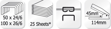 Handige tafelnietmachine voor gebruik onderweg. Geïntegreerde metalen ontnieter. Kunststof body met metalen mechanisme. Bovenlaadmechanisme voor snel herladen. Opbergruimte voor nietjes. Capaciteit maximaal 25 vel. Passend bij perforators ‘Trendy’.