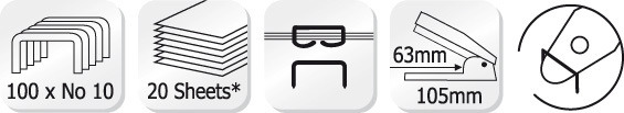 Handige kunststof nietmachine voor het huishouden en home office. Metalen apparaat met kunststof behuizing. Opbergruimte voor nietjes. Geïntegreerde ontnieter. Capaciteit maximaal 20 vel.