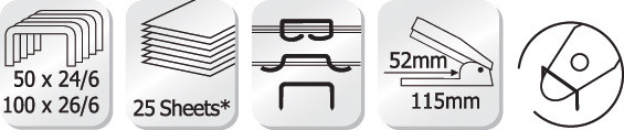 Handige tafelnietmachine. Kunststof body met metalen mechanisme. Bovenlaadmechanisme voor snel herladen. Opbergruimte voor nietjes. Met geĆÆntegreerde ontnieter. Voorzien van roterend aambeeld en reload indicator. Capaciteit maximaal 25 vel. Kleur blauw. Passend bij de perforator Aion 10G.