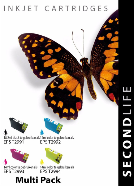 Deze cartridge (OEM No. C13T29964012) bevat 18+14×3 ml inkt. Kleur zwart, cyaan, magenta, geel en is geschikt voor de volgende printers: Expression Home XP 235,Expression Home XP 245,Expression Home XP 247,Expression Home XP 255,Expression Home XP 257,Expression Home XP 332,Expression Home XP 335,Expression Home XP 342,Expression Home XP 345,Expression Home XP 352,Expression Home XP 355,Expression Home XP 432,Expression Home XP 435,Expression Home XP 442,Expression Home XP 445,Expression Home XP 452,Expression Home XP 455. SecondLife Inkjets zamelt gebruikte cartridges in en vult deze opnieuw met inkt van hoge kwaliteit. Het voordeel hiervan is dat er geen nieuwe behuizing hoeft te worden gemaakt en zo profiteert u van de A-kwaliteit cartridges voor een scherpe prijs. Ook zijn deze cartridges voorzien van hogere inktvolumes waardoor u meer kunt printen voor minder geld. SecondLife is daarom niet alleen voordeliger, maar het hergebruik van cartridges levert ook een positieve bijdrage aan het milieu. Doordat SecondLife zich volledig toegelegd op het zelf in handen hebben van de lege cartridges tot het eindproduct produceren ze met hun eigen leeg goed. Dit levert een aantal voordelen op. In de eerste plaats is er totale controle over de kwaliteit. Doordat de cartridges zelf worden ingezameld weten zij precies de herkomst en kwaliteit van het product. Daarnaast kunnen ze goedkoper produceren doordat er een aantal schakels uit de keten verdwenen zijn.