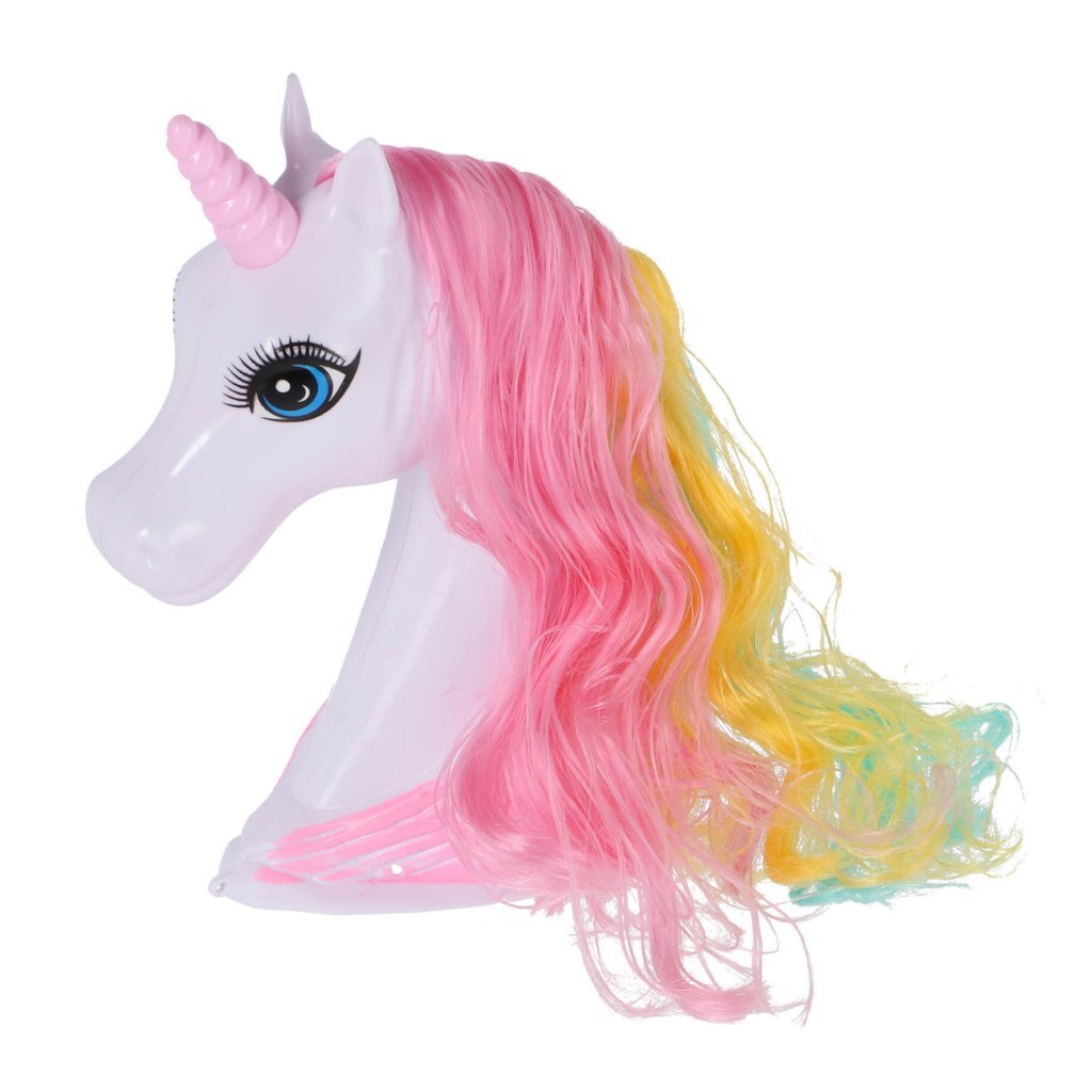 Eenhoorn kapkop met kambare manen die mooi gestyled kunnen worden. Inclusief borstel, elastiekjes, haarknipjes en overige accessoires. Geschikt voor kinderen vanaf 3 jaar.